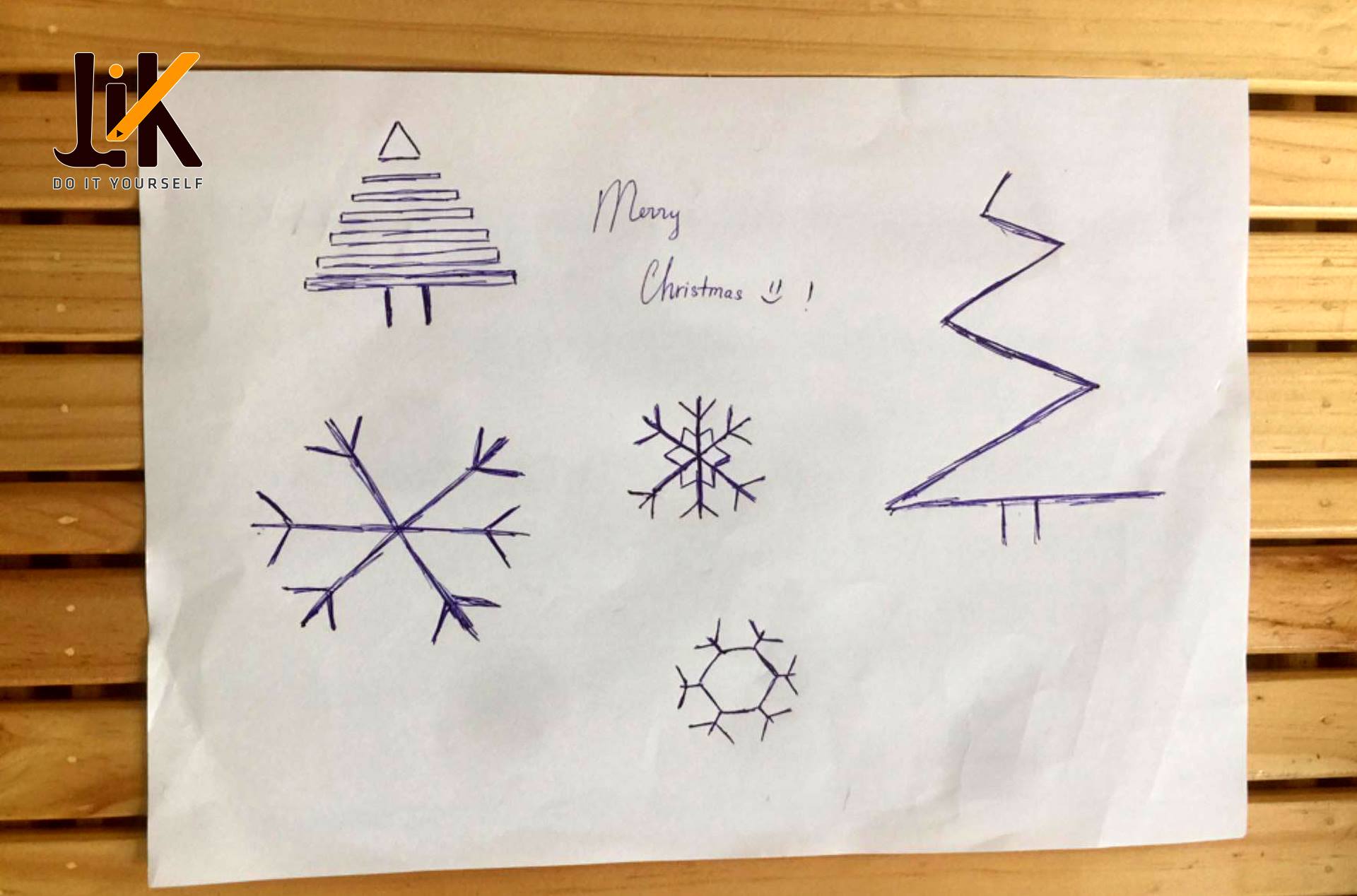 - Đầu tiên, hãy vẽ ra giấy mẫu trang trí giáng sinh mà bạn yêu thích.