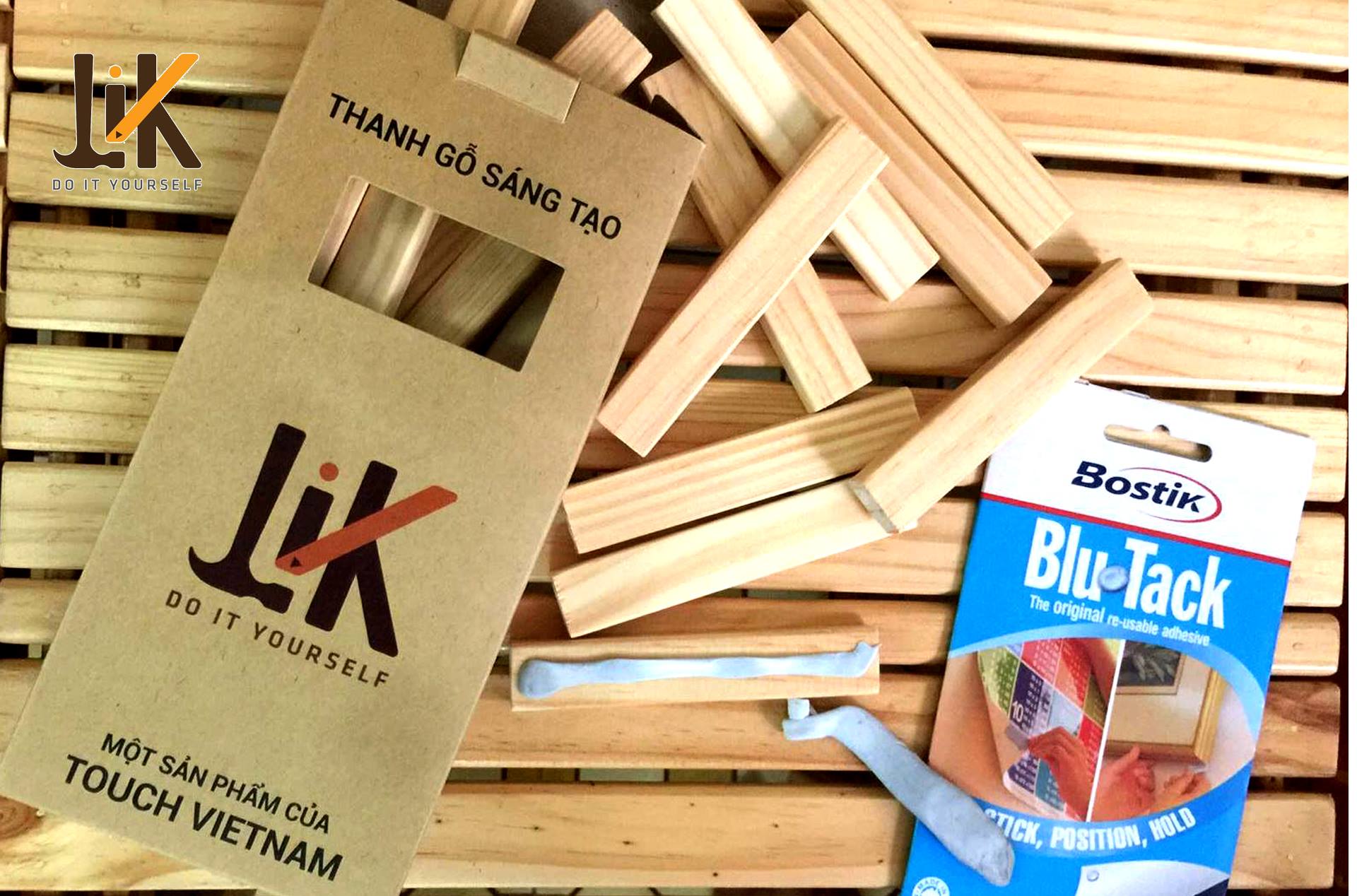 - Thanh gỗ sáng tạo, hãy chọn kích thước thanh gỗ phù hợp với nhu cầu trang trí của bạn, trong bài viết này LiK sử dụng thanh gỗ LiK2C và LiK2B.