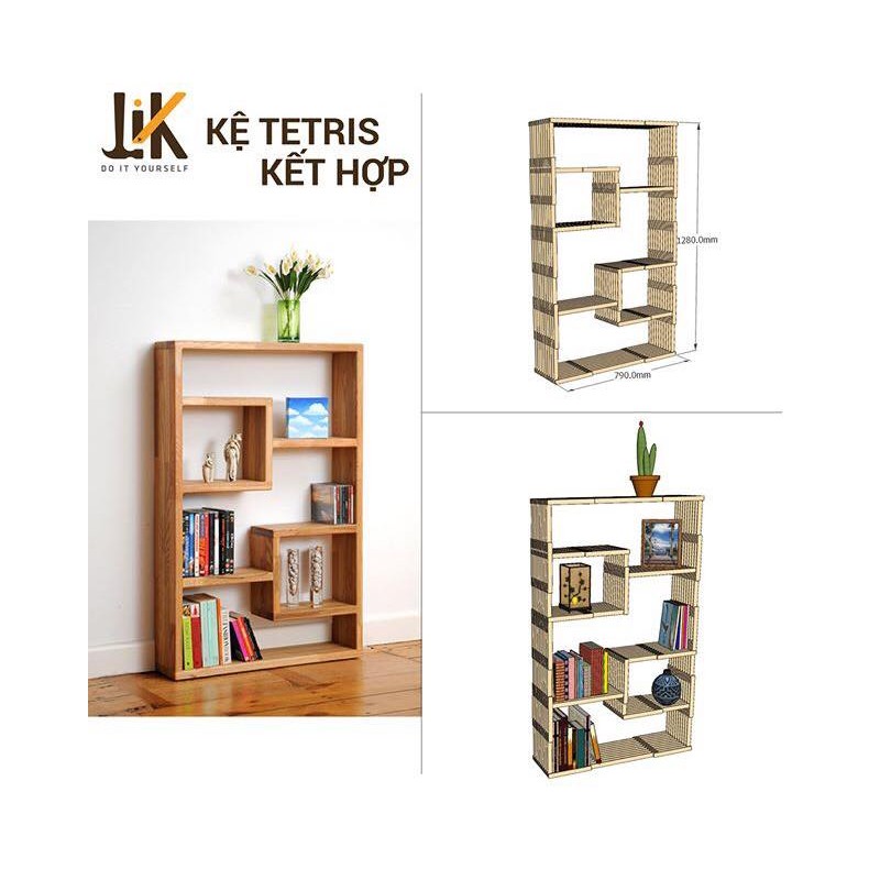 Kệ sách mô phỏng trò chơi Tetris với kiểu đóng của LiK, mọi việc trở nên vô cùng đơn giản.