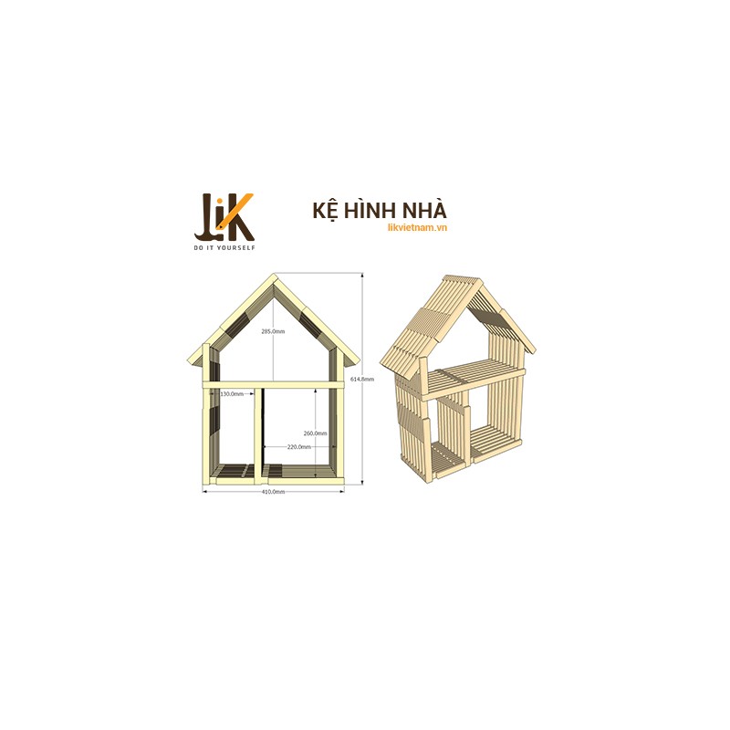 Căn phòng của bạn sẽ thêm phần độc đáo và ấm cũng với một chiếc kệ được tạo hình ngôi nhà, và được làm bằng những thanh gỗ sáng tạo đến từ LiK.